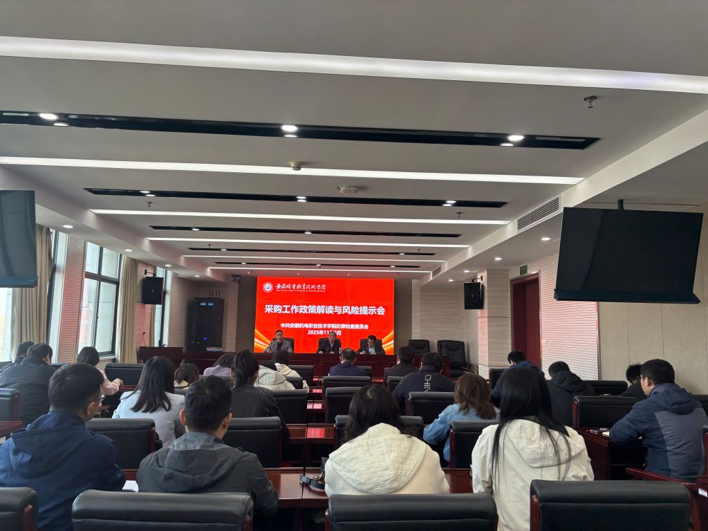 为进一步强化招标采购领域廉政风险防控,推动学校招标采购工作规范有序开展,11月5日下午,学校纪委在雨耕楼1120会议室召开采购工作政策解读与风险提示会。信息中心、国有资产管理处、教务处、后勤保障处、校园安全管理处等归口管理部门负责人,各二级学院院长、实训教研室主任、教学秘书、大规模设备采购项目负责人共计60余人参会。会议由纪委书记高道友主持。