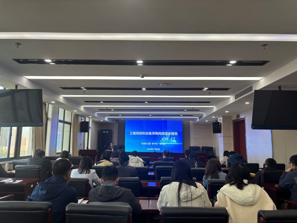 纪委办公室主任、审计处处长余丙荣围绕“工程项目和设备采购风险”作专题报告。他结合近年来学校在巡视、审计中发现的典型问题,深刻剖析了在招标需求制定、招标文件制定与采购程序、评标、合同履行、合同验收等环节易发多发的廉政风险点,强调全体人员须严守纪律底线,强化责任担当。