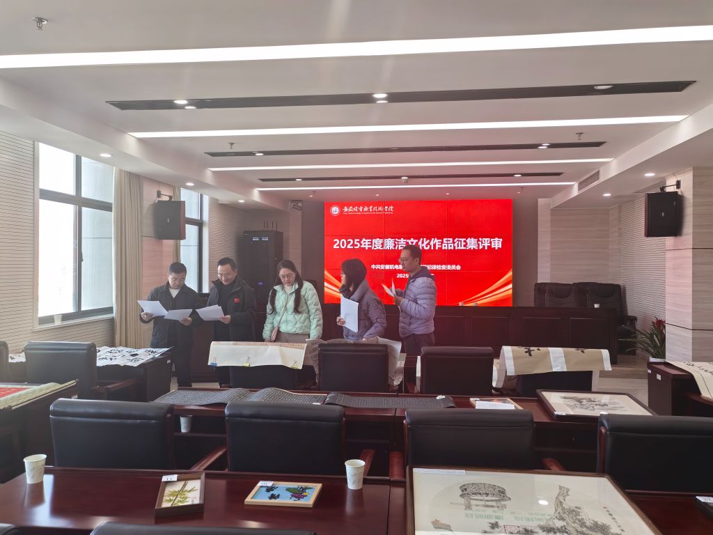 11月19日下午,学校纪委组织召开2025年度廉洁文化作品评审会。本次评审特邀安徽师范大学、芜湖职业技术大学、安徽商贸职业技术学院等校外和校内专家。专家依据“公平、公正、公开”的原则,从作品的主题契合度、艺术表现力、清廉文化内涵、原创性等方面,分别对教工组和学生组作品进行了综合评审。