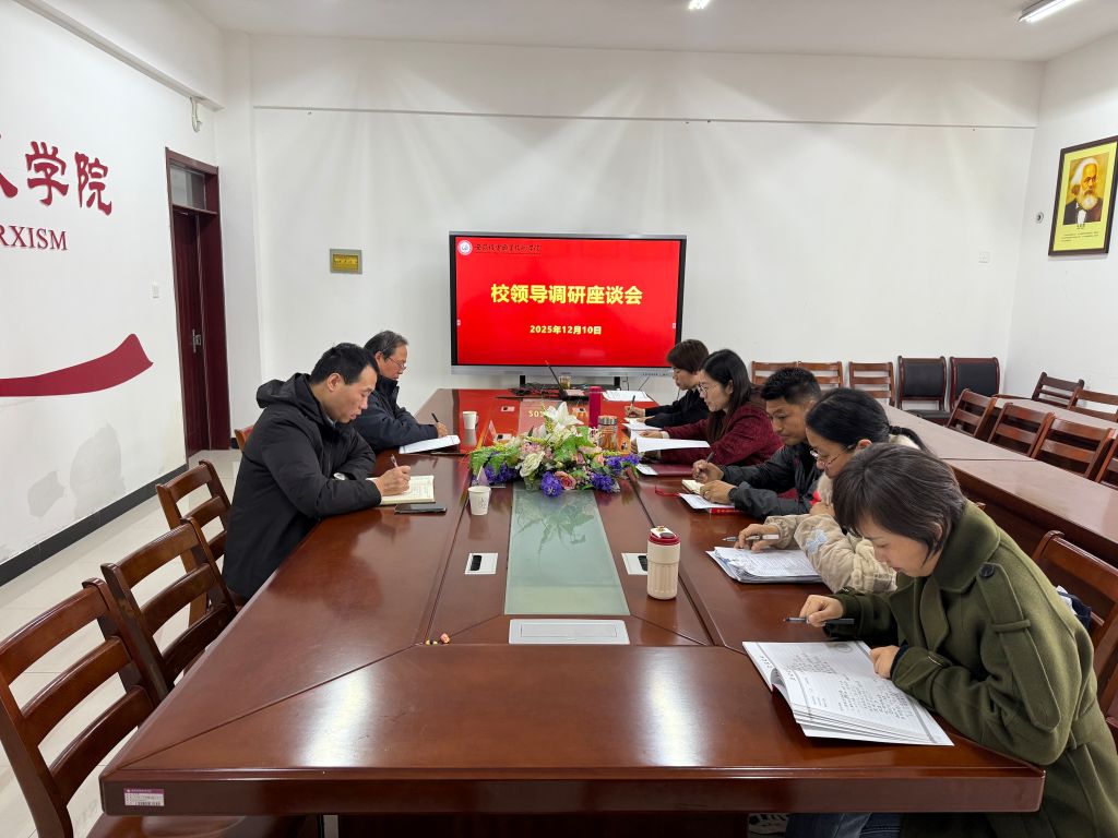 校纪委办公室副主任高立陪同调研。马克思主义学院党政班子成员、组织员参加座谈。